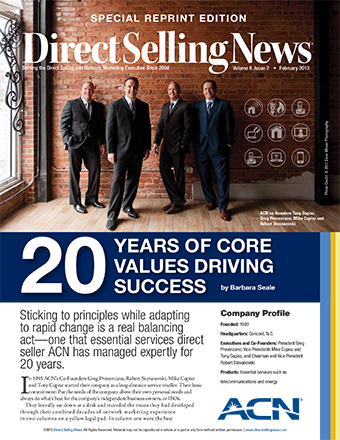 So with a yellow legal pad in front of them, they formulated a business plan. On one side of the page they wrote down everything that they knew worked well, and on the other side everything that didn’t. They ripped the page in half and only kept the side that contained what would become the governing principles behind ACN - integrity, solid business practices, and a commitment to always putting the needs of the masses above the needs of themselves. And those are the same principles that drive the company today, over two decades later.